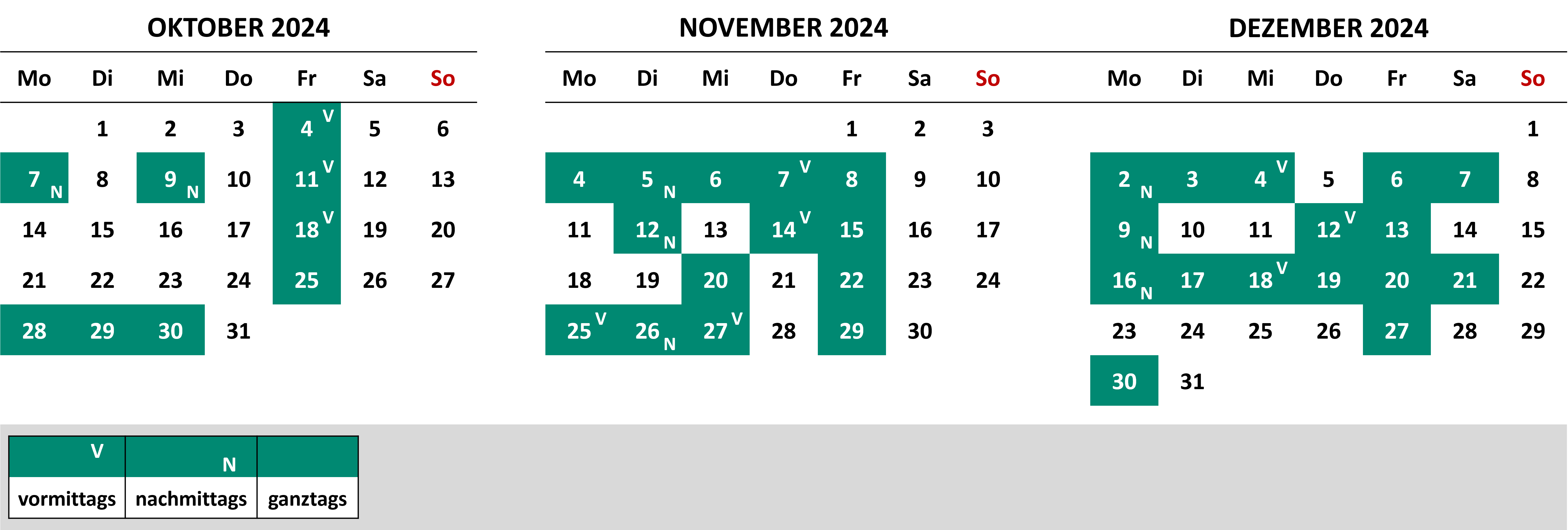 Die Grippeimpfung ist ohne Voranmeldung während den normalen Öffnungszeiten möglich, sofern eine Impfapothekerin anwesend ist (siehe grün markierte Halb-/Tage). Auf Wunsch kann auch ein Termin gebucht werden.
